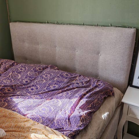 Myydään hyvässä kunnossa ehjä sängynpääty. Päädyn niskatuet sisältyy. Mitat leveys 180cm, korkeus 120cm.