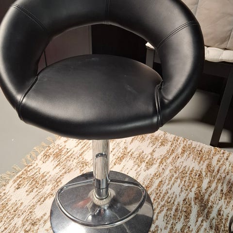 Tukeva, puinen baarijakkara. Joskus sudittu jollain kuultomaalilla, kaipaa pinnan puolesta ehkä ehostusta. Muuten ehjä ja tukeva!