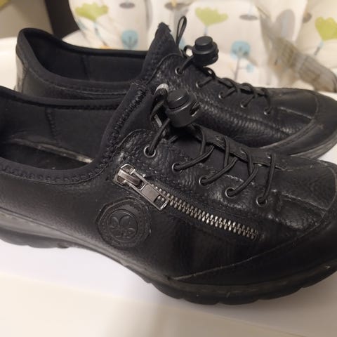 Rieker ready2go - naisten kävelykengät, koko 39. Väri beige. Päällinen on kevyesti rei’itetty hengittävyyden lisäämiseksi. Nauhakiinnitys edessä ja vetoketju sivussa helpottamassa pukemista. Pohjallinen Rieker Antistress -mallia. Kumipohja, jossa kuviointi paremman pidon takaamiseksi. Soveltuu arkikäyttöön ja vapaa-aikaan. Vähän käytetty. Ostettu väärän kokoisena. Edessä jälki.