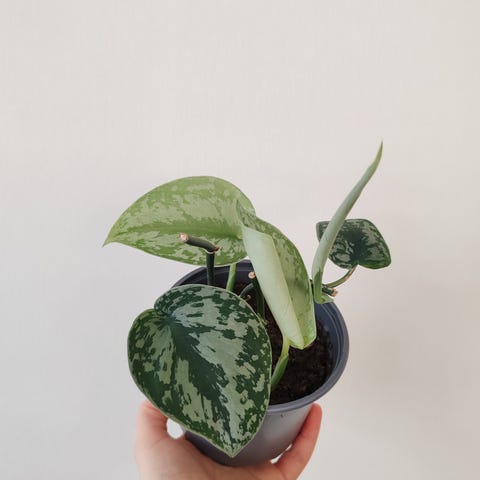 Scindapsus treubii "moonlight" eli Hopeaköynnös moonlight. 8kpl juurtumaan lähteneitä, suurimmaksi osaksi vielä lehdettömiä pistokkaita. En postita, kaikki yhteensä 4e.