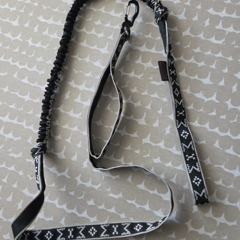 Manmat joustava koiran talutushihna.Hihnassa on kädensija ja koiran päässä myös kahva. Pituus 180cm, venytettynä n. 2,5m. Pari kertaa käytetty.