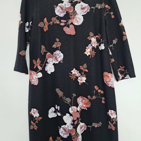 Kiva mekko musta pohja- valkeilla pilkuilla. Joustavaa materiaalia.