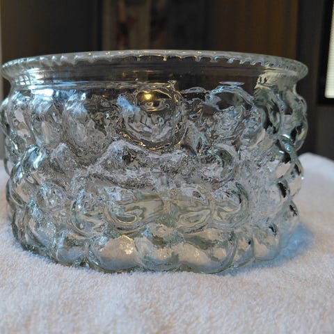 Lasikulho,metallivanne. Halkaisija 23cm,korkeus 9,5cm