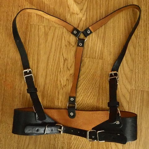 St. Vendetta harness S-kokoiselle (viimeinen kuva näyttää kokotaulukon). Täyttä nahkaa ja käyttämättömät. Mukaan tulee säilytyspussukka.