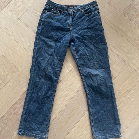 Väljän malliset farkut ylhäältä, kapenee alaspäin.
