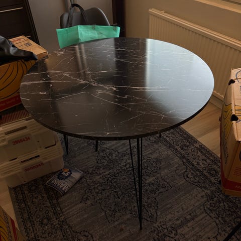 Myydään tarpeettomana valkoinen pyöreä ruokapöytä. Pöydän kannessa on pieni lähes huomaamaton jälki. Näkyy viimeisessä kuvassa.