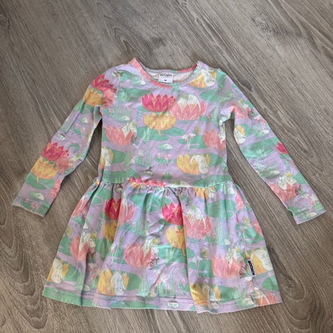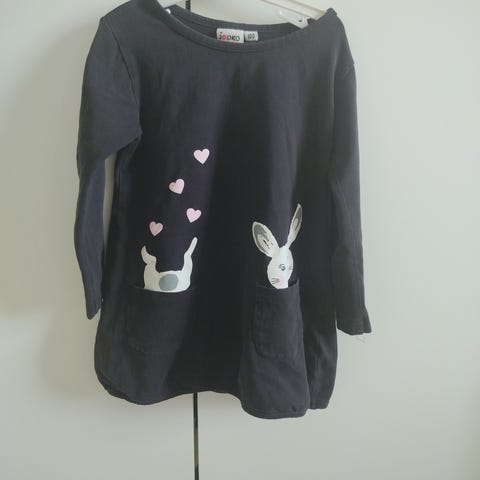Peppi pitkätossu mekko kokoa 104. Menee jo koossa 98. Kokolappu pitänyt tytöltä niskasta poistaa. Muutamia tussitahroja, jotka eivät ole lähteneet pesussa pois.
