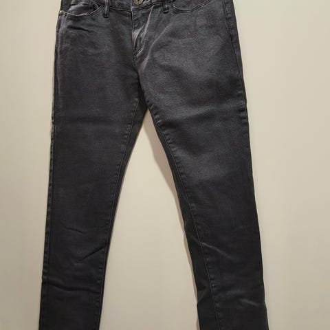 Myydään hyväkuntoiset vaalean harmaat farkut, lahkeissa vetoketjut, koko 38, mutta vastaa kokoa 36-38