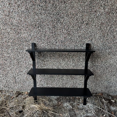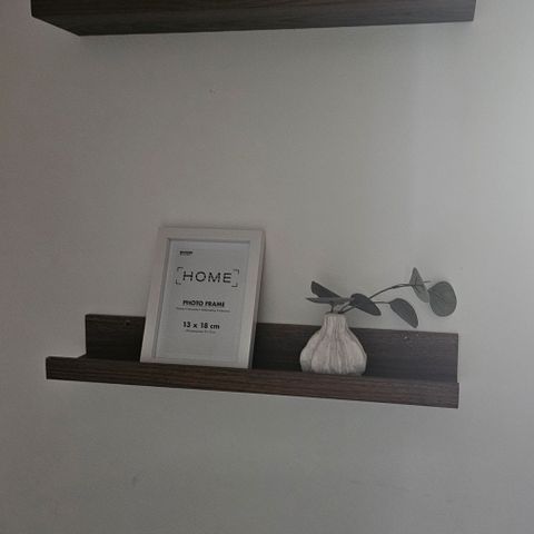 Ruskea seinähylly, mitat korkeus 17cm, leveys 79 ja syvyys 15cm. Mieluiten nouto.