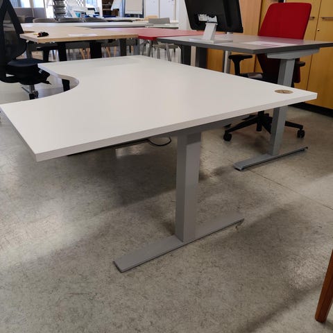 Käytetty sähköpöytä tyylikkäällä harmaalla kannella.