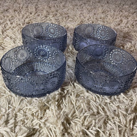 Riihimäen lasin upeat Grapponia jälkiruokakulhot(6kpl) ja tarjoilukulho. Voidaan myydä myös erikseen kulhot tai tarjoilukulho. Kulhot,6x15, 90 euroa. Tarjoilukulho 40 euroa.