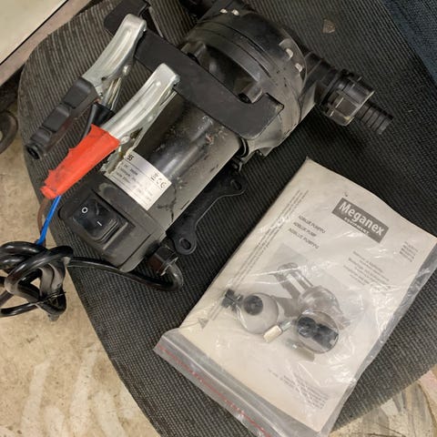 Adblue säiliön pumppu + letkuja ja pistooli. Toiminee muillekin nesteille. Sec liitin.