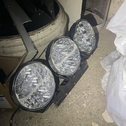 Parkilliset ja toimivat 9 tuumaiset pallovalot, kilventelineellä ja johtosarjalla. Johtosarjaa hieman muokattu mutta toimii täysin samallatavalla. Yhdestä pallosta parkkivalo vähän pimentynyt mikä näkyy viimeisess kuvassa, muuten toimii ja valaisee hienosti.