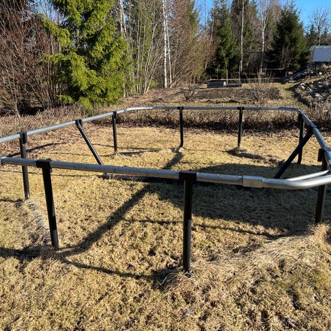 Mukaan portaat, tramppaskootti ja JumpGames cosole kahdella kiinnikkeellä.