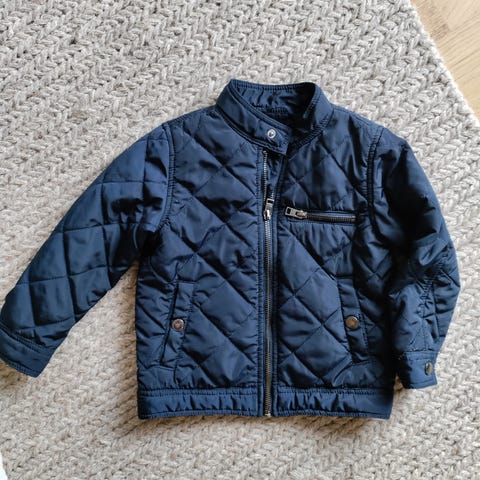Lasten takki pojille, koko 98. Sininen väri, jossa monivärinen kuosikuvio. Takissa on pitkä hiha ja huppu. Sopii arki- ja ulkokäyttöön lapselle, jonka vaatekoko on noin 98 cm.