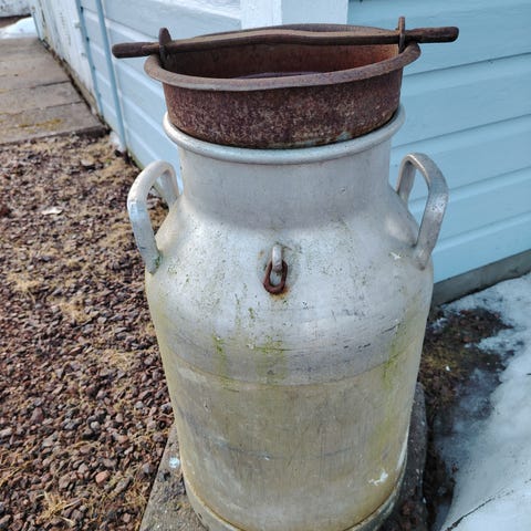 Vanha maitotonkka. Halkaisija : 35 cm. Korkeus : 54 cm.