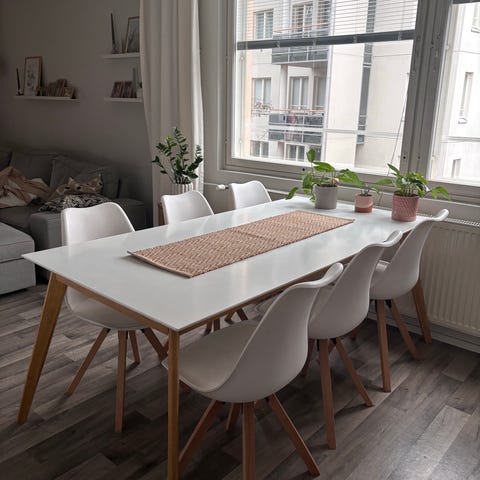Myydään käytetty, mutta hyväkuntoinen ruokailuryhmä. Alunperin muistaakseni Jyskistä.