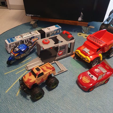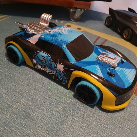 Tästä bileauto, musat raikaa, valot vilkkuu ja kulkee itsestään eteenpäin napista. Mukaan patterit jotka nyt kyydissä.