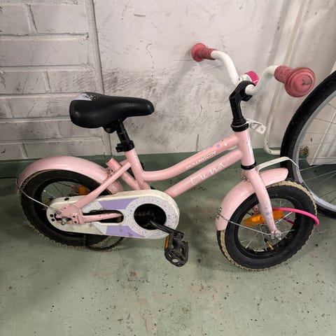 Hyväkuntoinen pyörä seuraavalle. Mukana apupyörät ja työntöaisa. Säilytetty sisällä varastossa.