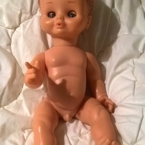 Jalat puuttuu (jalkojen liimaukset pettäneet) muuten hyväkuntoinen. Säilytetty aina sisällä, vitriinissä.