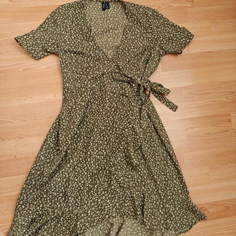mekko,ryppyviskoosia, helmassa frillat, puolipitkät hihat joissa smokkirypytys
