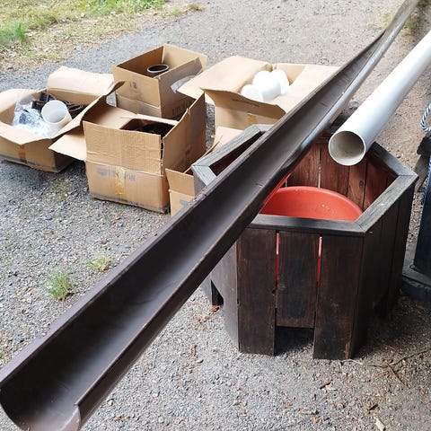 Hyväkuntoiset Ruukin tummanruskeat kourut ja syösyt.Irroitus joko itse tai korvaustavastaan irroitettuna.Tikkaat löytyy lainaksi.Kysy lisää jos kiinnostuit.Hinta alkaen 15e.