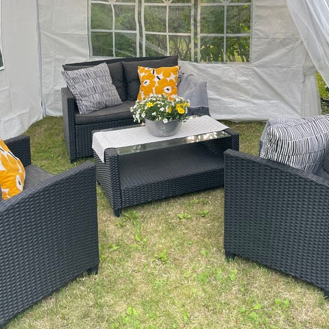 Polyrottinkiset kalusteet ulkokäyttöön.