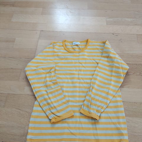 Marimekon ihanin t-paita koossa 80-86 cm. Ei tahroja, ei reikiä enkä löytänyt muitakaan moitteita. Oikein siisti, mutta varmasti pesussa uuteen verrattuna pienesti haalistunut. Ei mitenkään häiritsevästi kuitenkaan.