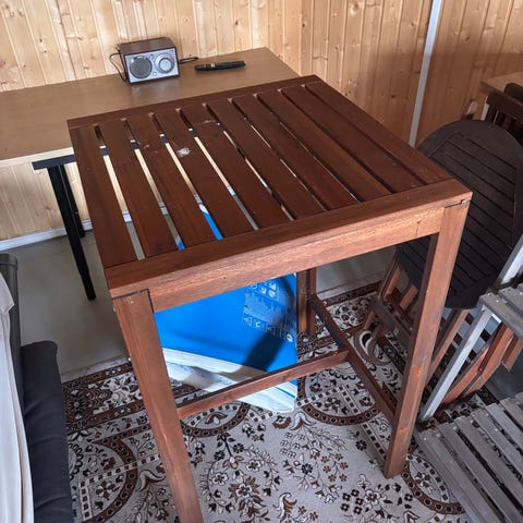 VARATTU. Retro puutarhapöytä. Kokoontaittuva. Ehjä, mutta maalausta vailla. Varax-merkkinen.Puinen ulkopöytä metallirungolla. Pöydän kansi koostuu punaisiksi maalatuista pintalaudoista. Jalat metallia. Nouto tai kulkeutuu matkatessa.