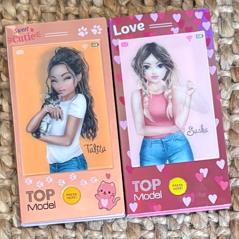 Top model värityskirja. Voit suunnitella hienoja pukuja mallien päälle piirtäen. Löytyy lisäksi tarroja. Uudenveroinen. Yhteen/kahteen sivuun tehty mutta olen ne sivut ottanut pois.