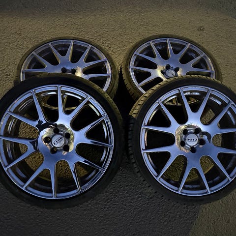 Myydään vanteet + renkaat. 235x35x19, ollut Audi TT 2000 vm. Kohtalaiset vanteet kromi alkaa kyllä irrota sisäpuolelta. Renkaat uudet, mutta yksi rikki.
