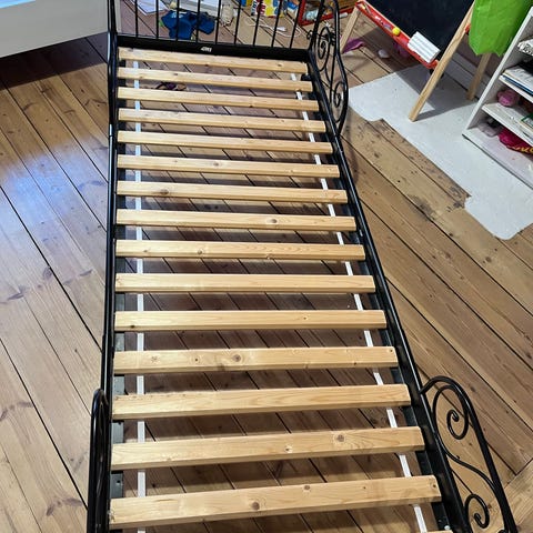 IKEA juniorisänky lapsille. Valkoinen metallirunkoinen sänky, jossa koristeelliset päädyt ja sivulaidat. Sopii siirtymävaiheeseen pinnasängystä isompaan sänkyyn. Soveltuu käytettäväksi lastenhuoneessa junioripatjan kanssa. Rungon materiaali on metalli ja väri valkoinen. Hintaan sisältyy sälepohjat.