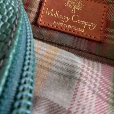 Mulberry vintage nahkalaukku naisille. Laukku on valmistettu ruskeasta nahasta ja siinä on kaksiosaiset olkahihnat. Laukussa on yläreunassa vetoketjusuljenta ja metalliset lenkit hihnojen kiinnityksessä. Sisäpuoli on vuorattu ruudullisella kankaalla ja sisällä on taskuja pienten tavaroiden säilytykseen. Sopii arkilaukuksi tai muiden päivittäisten tavaroiden kuljettamiseen. Pinnassa pieniä naarmuja kohdin ja sisäkankaassa jälkiä. Ei tuoksuja.