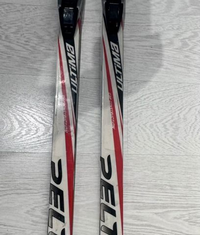 Myyntiin Peltonen Delta 160 sukset SNS Salomon siteillä. Toisessa siteessä kolo päällä (kuva), ei vaikuta käyttöön.