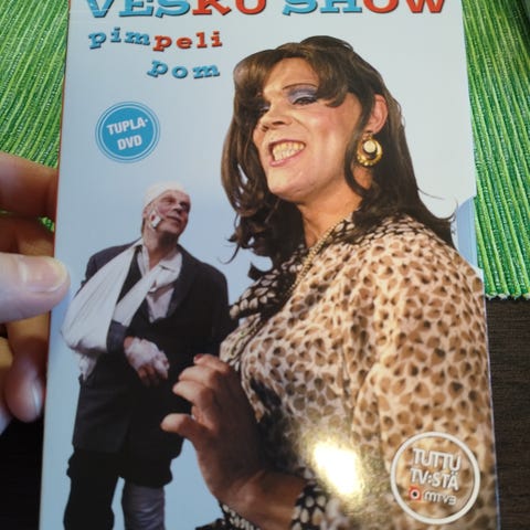 Pimpeli pom tupla-dvd. Pakkaus sisältää kaksi dvd-levyä, joilla on sketsiviihdettä ja hahmorooleja. Kansi- ja takakuvissa esitellään ohjelman esiintyjiä ja kohtauksia. Sopii dvd-soittimille, jotka tukevat dvd-videoformaattia.