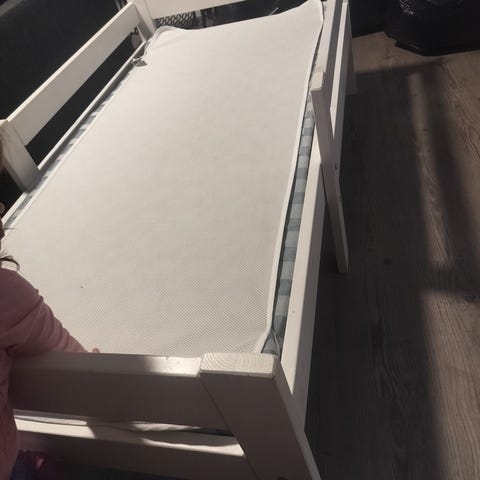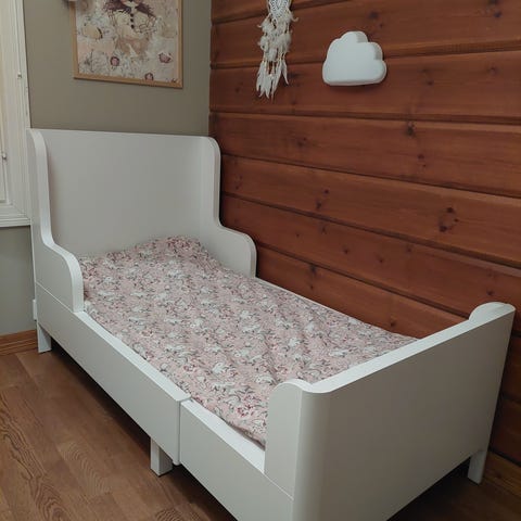 Jatkettava lastensänky, jossa puinen runko ja vaalea patja. Sänkyä voi pidentää lapsen kasvaessa. Sopii lapsen omaan huoneeseen tai vierassängyksi. Puinen rakenne on tukeva ja patja muodostuu useammasta osasta, jotka voidaan sijoittaa sängyn pituuden mukaan.