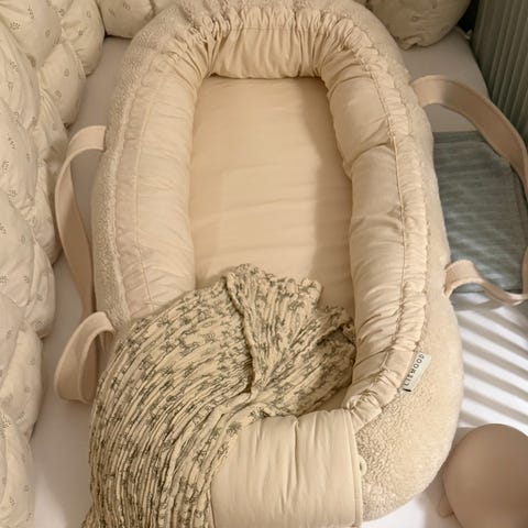Liewood Gro Babylift vauvan unipesä. Pehmeä ja topattu, jossa on nostokahvat helpottamaan kantamista. Beige pohjaväri ja monivärinen eläinkuviointi. Soveltuu vastasyntyneen ja pienen vauvan lepäämiseen ja siirtämiseen huoneesta toiseen. Siisti kunto, ei moitittavaa. Ollut yhdellä vauvalla käytössä. Päällinen pestävissä.