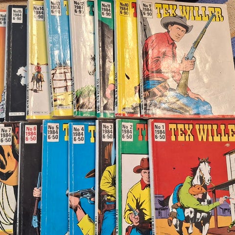 Tex Willer sarjakuvalehdet 1974. Lukukunnossa, osa liimauksista irtoilee.