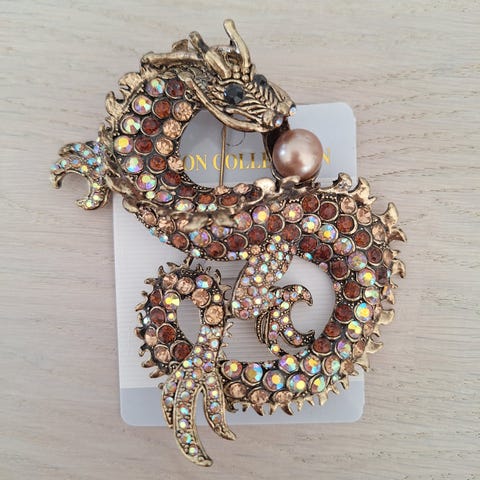 Haute Couture rintaneula naisille. Kullattu koru, jossa on kristallikoristeita. Eläinhahmoinen muotoilu, kiinnitys neulalla takapuolella. Sopii käytettäväksi esimerkiksi takissa, neuleessa tai laukussa asun yksityiskohtana.