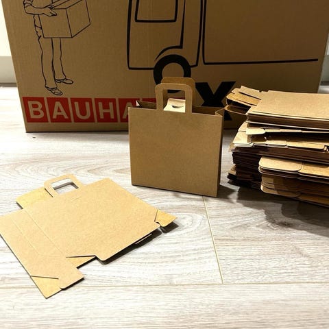 Sekalainen erä pahvilaatikoita ja pakkausmateriaaleja. Mukana erikokoisia ja -muotoisia laatikoita (ei mitään isoja), sekä paksuja paperipusseja, osa litistettynä ja osa koottuna. Soveltuvat esimerkiksi nettimyyntien paketointiin. Materiaalina pääasiassa pahvi ja kartonki. Erä sisältää useita kappaleita, tarkka määrä ja mitat vaihtelevat.