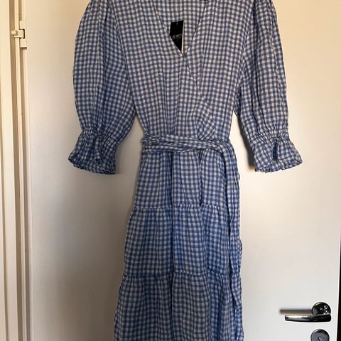 Hyväkuntoinen musta-valkoraidallinen puuvillamekko arkeen ja juhlaan.