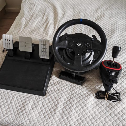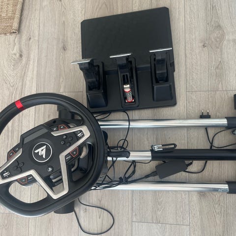 Thrustmaster T248-rattiohjain ja poljinsetti PlayStation-konsolille ( ps5, ps4) Paketissa on ratti, erillinen poljinmoduuli, johdot sekä käyttöohjeita. Ratti on kiinnitetty erilliseen ajotuoliin/ajotelineeseen, jossa on kangasverhoiltu istuin ja metallirunko. Sopii ajosimulaattoreihin ja kilpa-ajopeleihin, joissa tarvitaan tarkkaa ohjausta ja analogisia polkimia. Yhteensopivuus ja mahdolliset lisävarusteet kannattaa varmistaa valmistajan ohjeista.