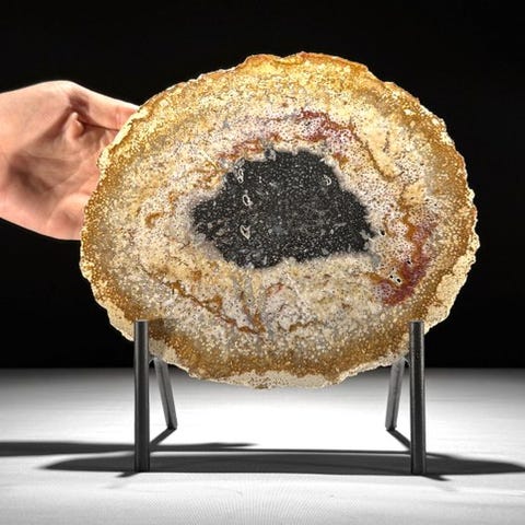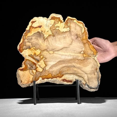 Upea pala fossiloitun palmun juurenankusta, kiinnityksen päälläKaunis pala fossiilipalmun rungosta, upeilla värinsävyillä ja tyypillisen puhkeaman yksityiskohdilla. Kuoreen ulkopuolella näkyy selvästi kuoren rakenne ja keskipisteessä korostuu palmun tyypillinen muodostuma. Sisäosasta osa on geodetisesti kiteytynyt. Viipale on erittäin kauniisti kiillotettu, jolloin yksityiskohdat erottuvat selkeästi.Lähes mitat - mukaan lukien jalustaKorkeus: 21,7 cm - Leveys: 22 cm, Viipaleen paksuus: 1,2 cmLähes mitat - ilman jalustaaKorkeus: 18,2 cm - Leveys: 22 cm, Viipaleen paksuus: 1,2 cmVAROITUKSET:- Huomioithan, että yksi esineistä on otettu hämärästä studiossa, värit voivat vaihdella ympäristön mukaan.- MAINITTU PAINO SISÄLTÄÄ PAKKAUSMATERIAALIN.KULJETUS- Tuote lähetetään track & trace -koodilla DHL Parcelin, DPD:n tai postNl:n kautta. Seurantatiedot päivittyvät Catawiki-kohteeseesi, kun paketti on jätetty matkaan.- Sovi säännöllisesti, jotta pakettisi ei palautuisi meille; jos näin käy, ostaja vastaa toisen lähetyksen toimituskustannuksista.- Sevittely Espanjaan ja Portugaliin käytä tätä linkkiä ja lisää Catawiki-kohteestasi löytyvä seurantanumerohttps://clientesparcel.dhl.es/LiveTracking/Home- EMME YHDISTÄ KULJETUKSIA!!!- Jos sinulla on kysyttävää paketistasi, ole hyvä ja ota meihin yhteyttä Catawiki-viestipalvelun kautta. Vastauksemme pyrimme antamaan kolmen arkipäivän sisällä.