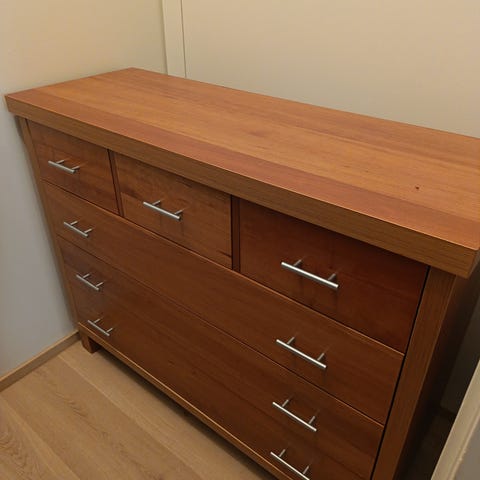 Myydään tumm.ruskea lipasto, 4 vetolaatikkoa ja alaosassa kaapit. Mitat: leveys 108 cm, korkeus 80 cm, syvyys 35.5cm. Hp. 30€