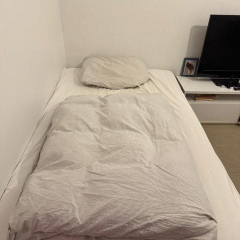 Vierashuoneesta uuden isomman sängyn tieltä myyntiin ruskea Piscina Pallas 120cm leveä runkopatjasänky. Mukaan uudenveroinen petauspatja ja nätti beige helmalakana.