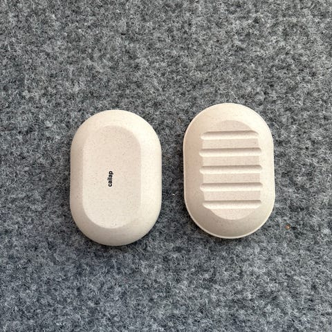 Kirkasta muovia Oraksen saippuakuppi Sensiva-suihkutankoon.