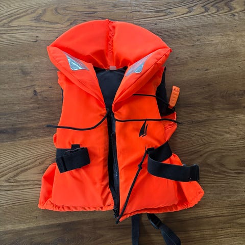 Täysin käyttämätön, alkuperäisessä pussissa säilytetty McSailor-merkkinen pelastusliivi. Sopii 30-40 kg painavalle.
