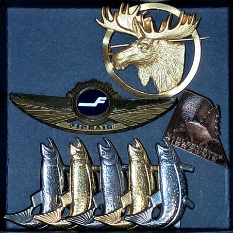 Kuvanmukaiset,vanhat matkamuisto pinssit.