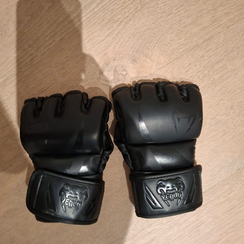 Myynnissä ylimääräisenä Venumin neljän unssin vapaaotteluhanskat, koossa L/XL, väri musta ja hopea. Hyväkuntoiset, käytetty melko vähän.