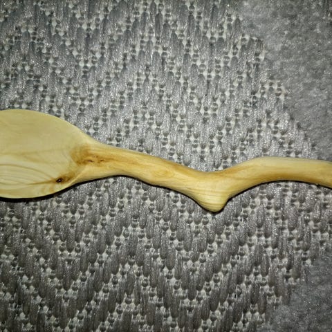 Katajainen haarikka ja koristeveistetyt lusikat